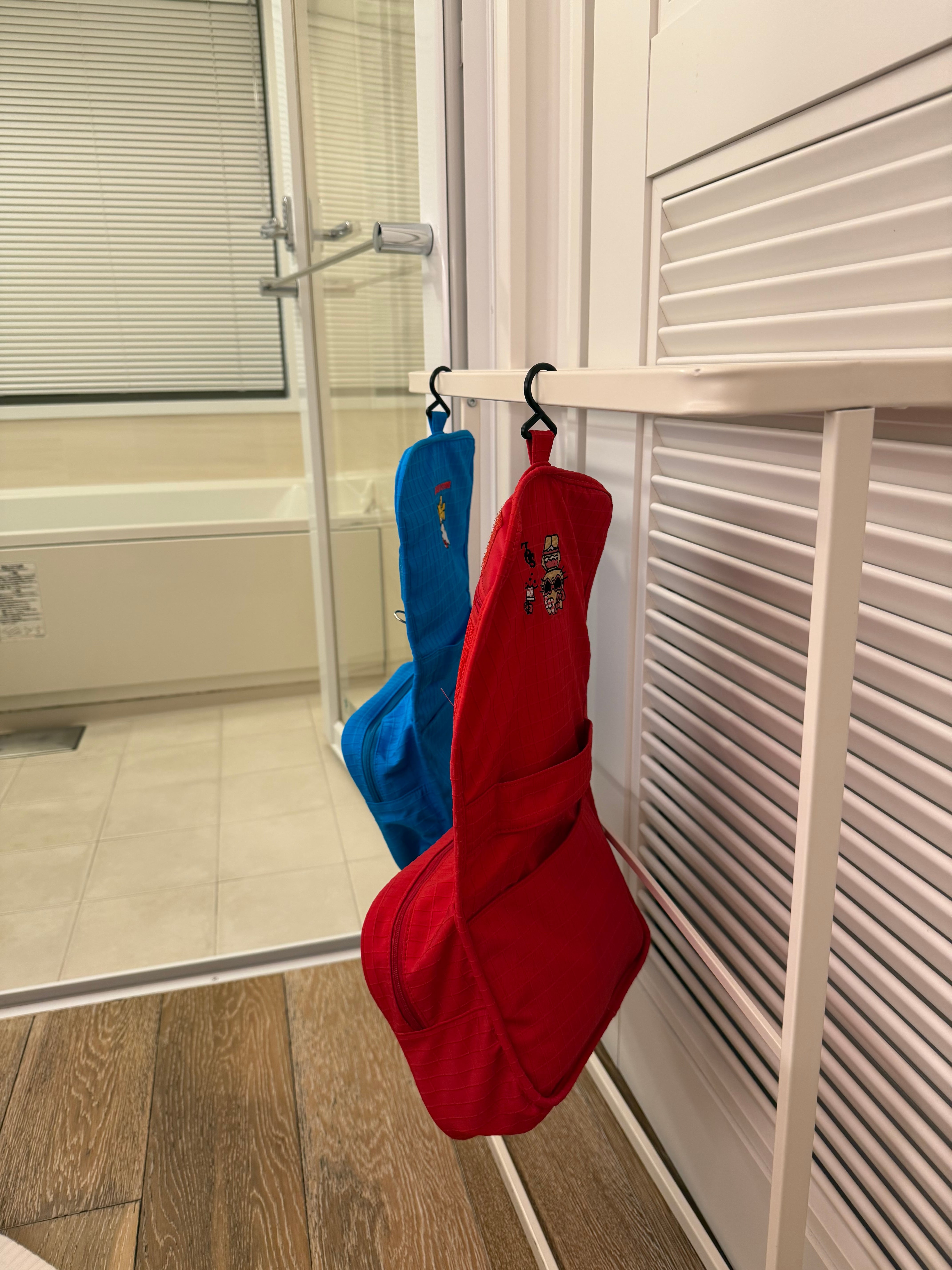 スキンケア&洗面用具セットの収納に便利な吊り下げて使えるハローキティの刺繍が入った限定ポーチ