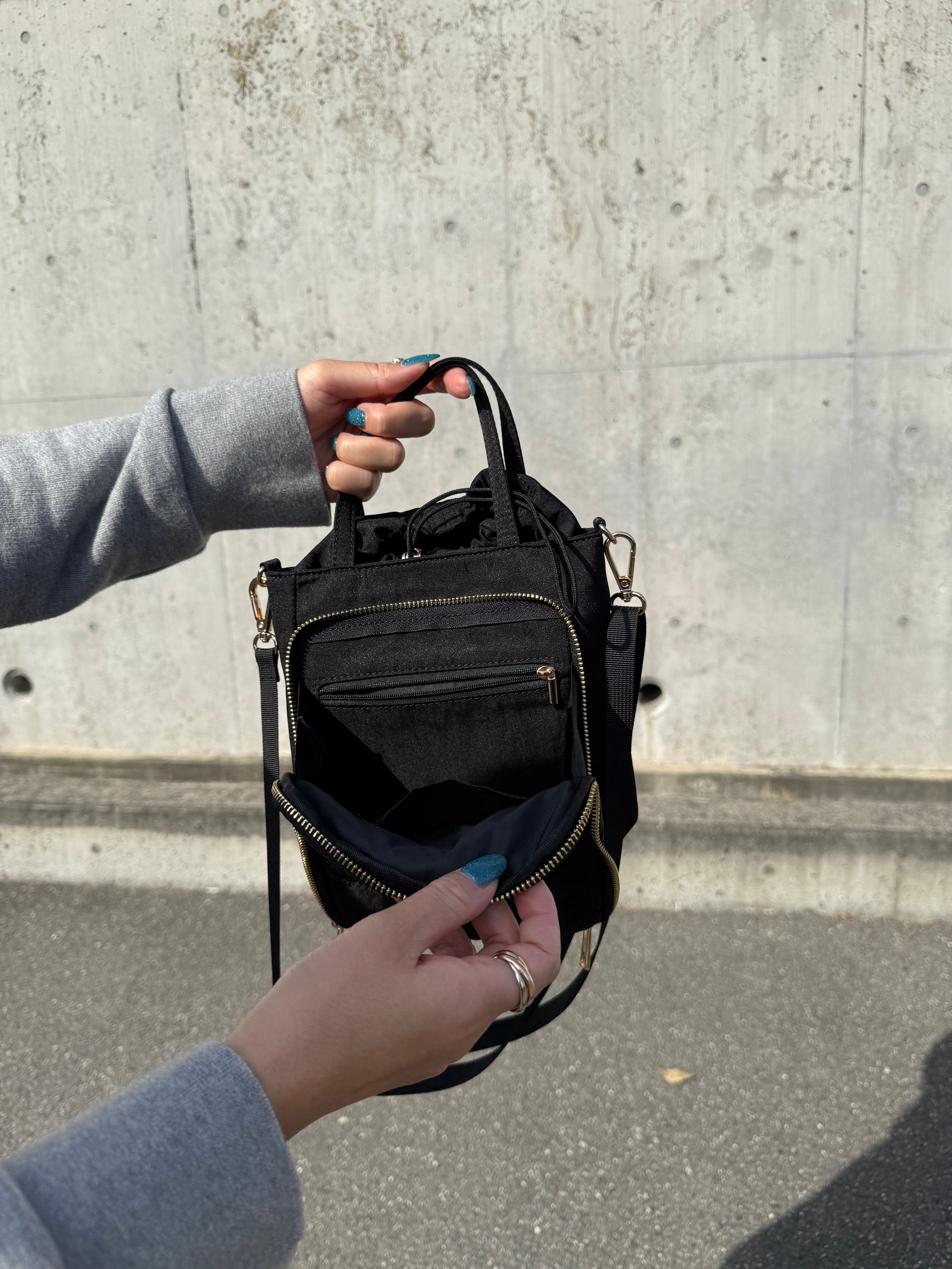 巾着型のショルダーバッグ
