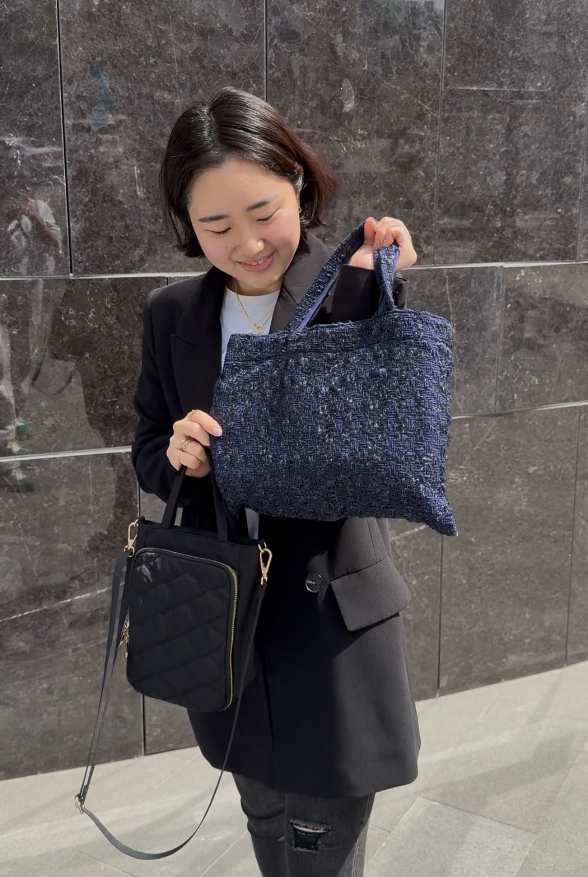 とっても可愛いダークネイビーのツイード。